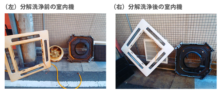 ホコリっぽい環境や油汚れが着く環境で、使用のエアコンは特に汚れが原因になります。