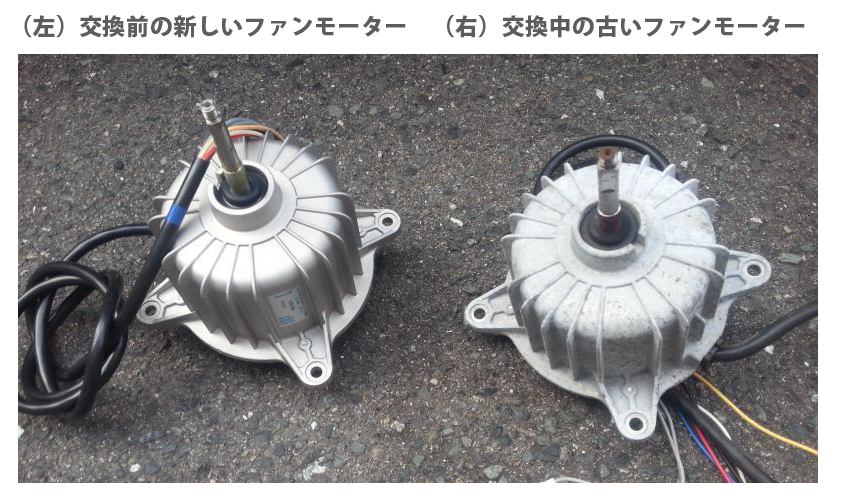 左側が新品ファンモーター・右側が古いファンモーターです。